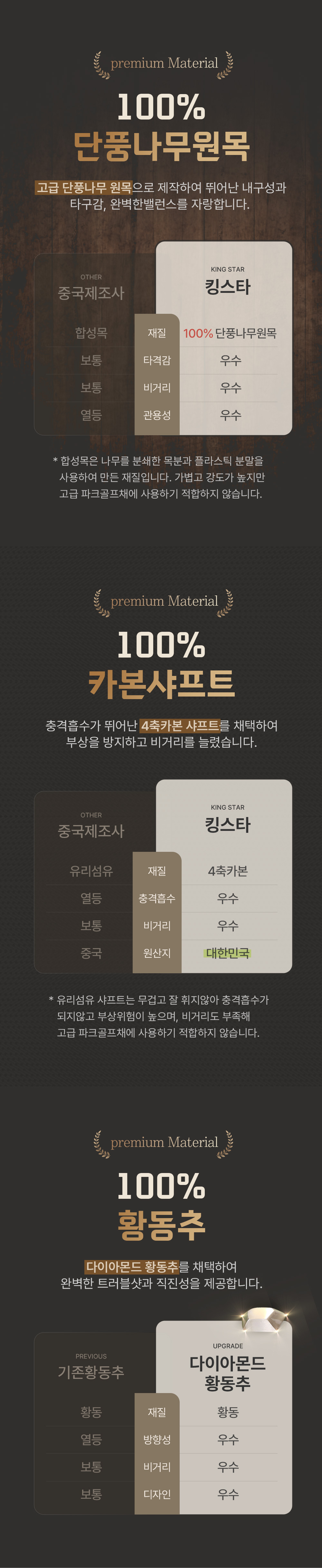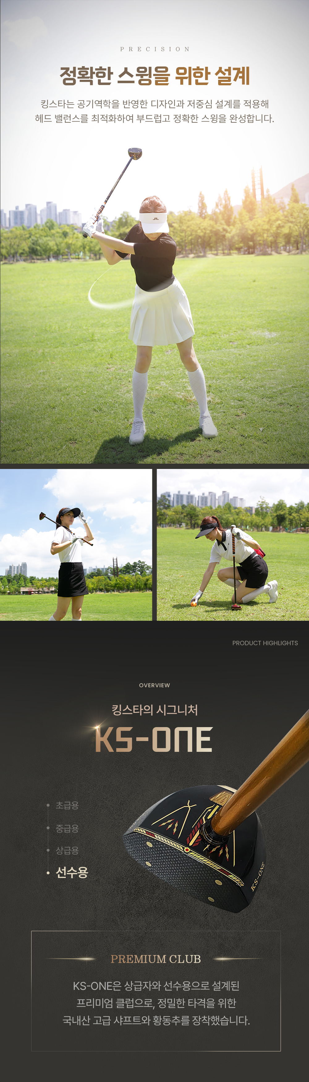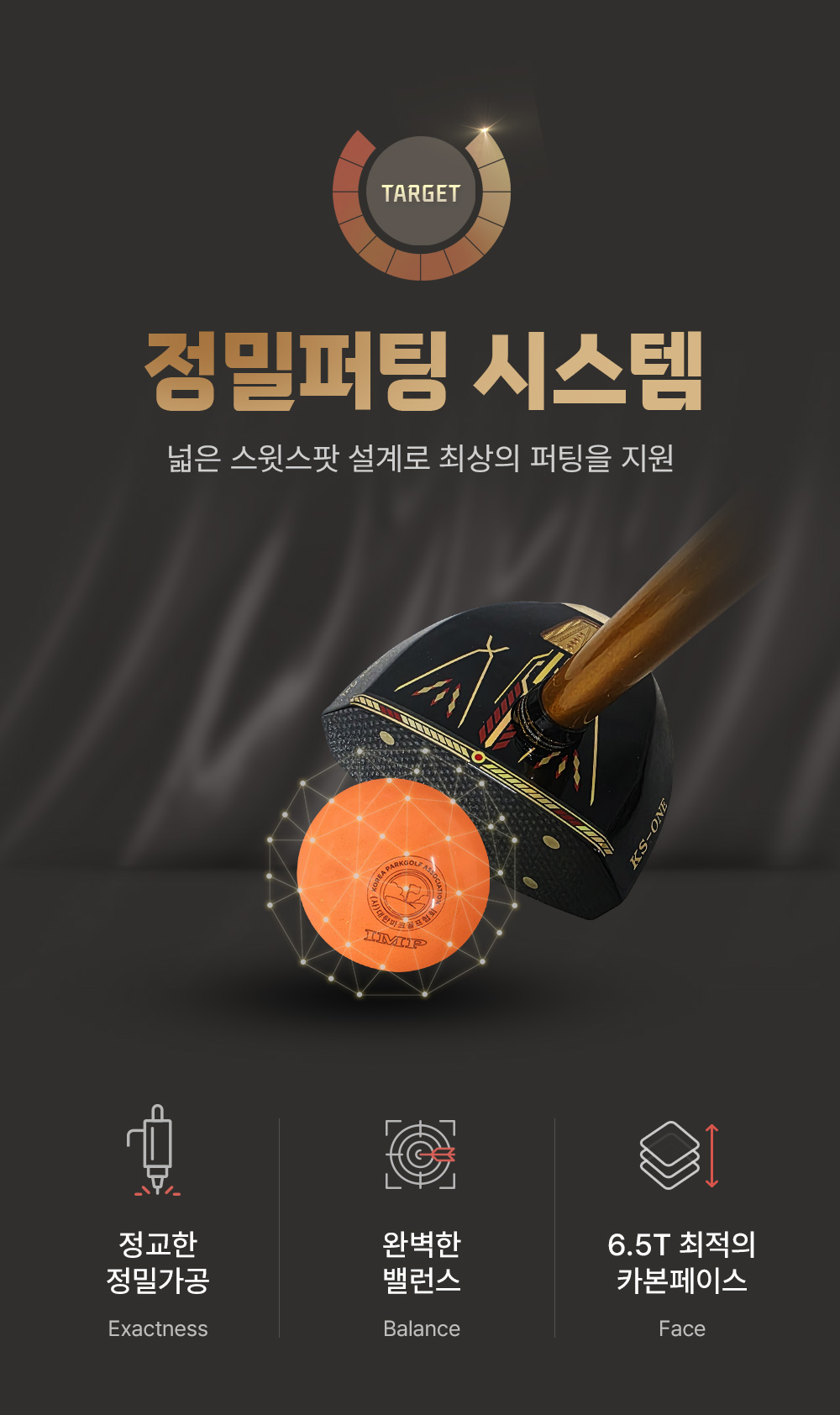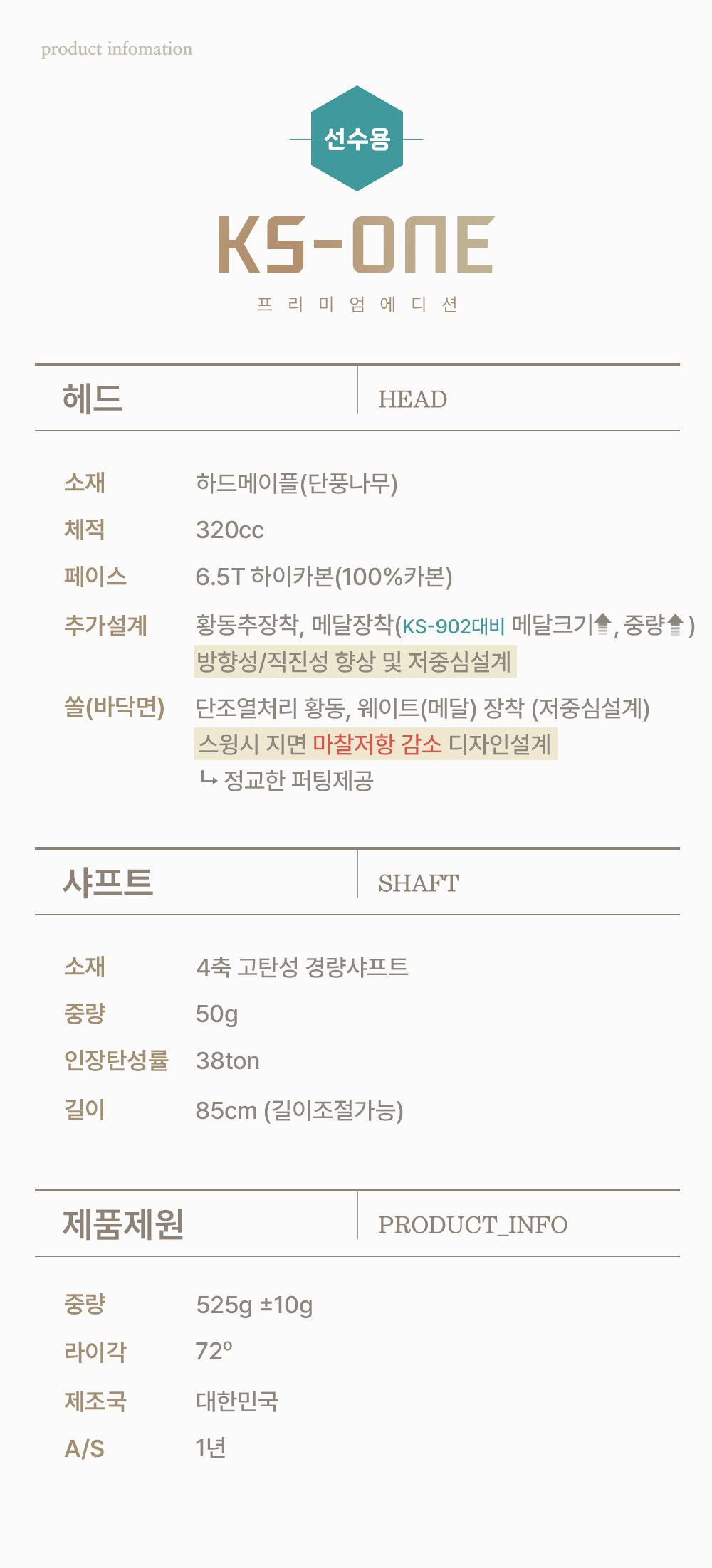황동추와 메달(메달크기 및 중량 증가)이 장착된 6.5T하이카본 페이스의 4축 고탄성 경량샤프트
